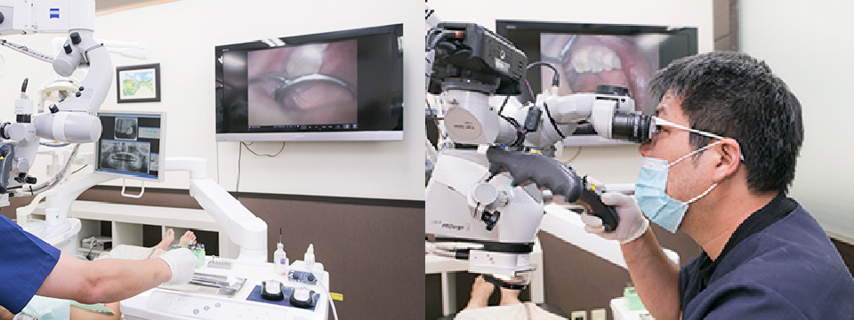 初診時にはマイクロスコープを設置しているユニットに座って頂き、お口の中の状態を動画撮影します。そして動画を一緒に見ながら現在の歯の状態や必要な治療、今後の治療計画についてわかりやすく説明します。実際にご自身のお口の状態を見ていただく事で歯の健康に対する意識が高まり、治療の必要性を理解していただくことができます。