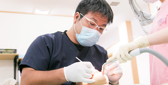 当院では、麻酔の注射の前に表面麻酔を塗布して、麻酔液をゆっくりと注入したり、細い麻酔針を使用するなど、なるべく痛みの少ない治療を心がけています。