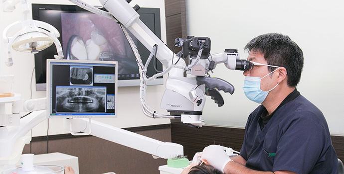 当院では根管治療を行う際はマイクロスコープを使用し、治療の精度を高めています。