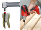 ステンレス製の切削器具を使い、手指のみで根の中を清掃します。例えるなら木の板にネジを埋め込む時に手でドライバーを回す様なもので、とても時間がかかります。