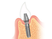 局部麻酔を行ったあと、顎の骨にインプラントを埋め込みます。このインプラントが新しい歯の土台となります。手術後は、インプラントと骨が結合するまで待ちます。様々な条件によって期間が異なりますが、2ヶ月~半年が目安となります。